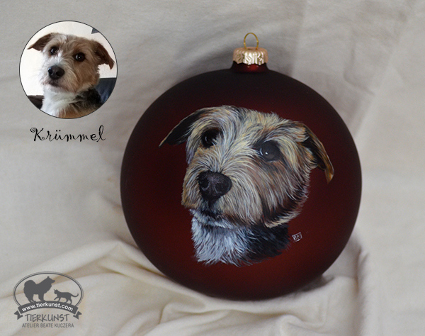 Die Kugel ist der Hammer. Sie haben dem Bild von Carlos etwas lebendiges gegeben (die Augen…). Perfekt, ich sehe nicht irgendeinen Rauhaardackel, ich sehe meinen Carlos… so wie er in unseren Herzen weiterlebt.